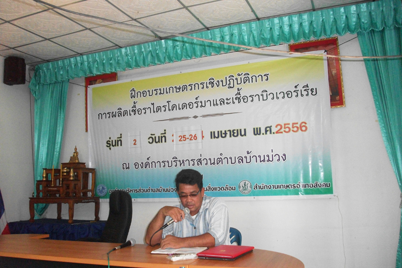 | 23-26 เมษายน 2556 : นายฉัตรชัย สิทธิหาโคตร และนายนพวิชญ์ คำขะ นักวิชาการส่งเสริมการเกษตรชำนาญการ ศูนย์บริหารศัตรูพืช จังหวัดขอนแก่น เป็นวิทยากรฝึกอบรม การผลิตเชื้อราไตรโคเดอร์มา และการผลิตเชื้อราบิวเวอร์เรีย 2 รุ่น ในวันที่ 23-24 เมษายน (รุ่นที่ 1 ) และ วันที่ 25-26 เมษายน (รุ่นที่ 2 ) โดยมีเกษตรกรเข้าอบรม รุ่นละ 50 คน รวม เป็น 100 คน